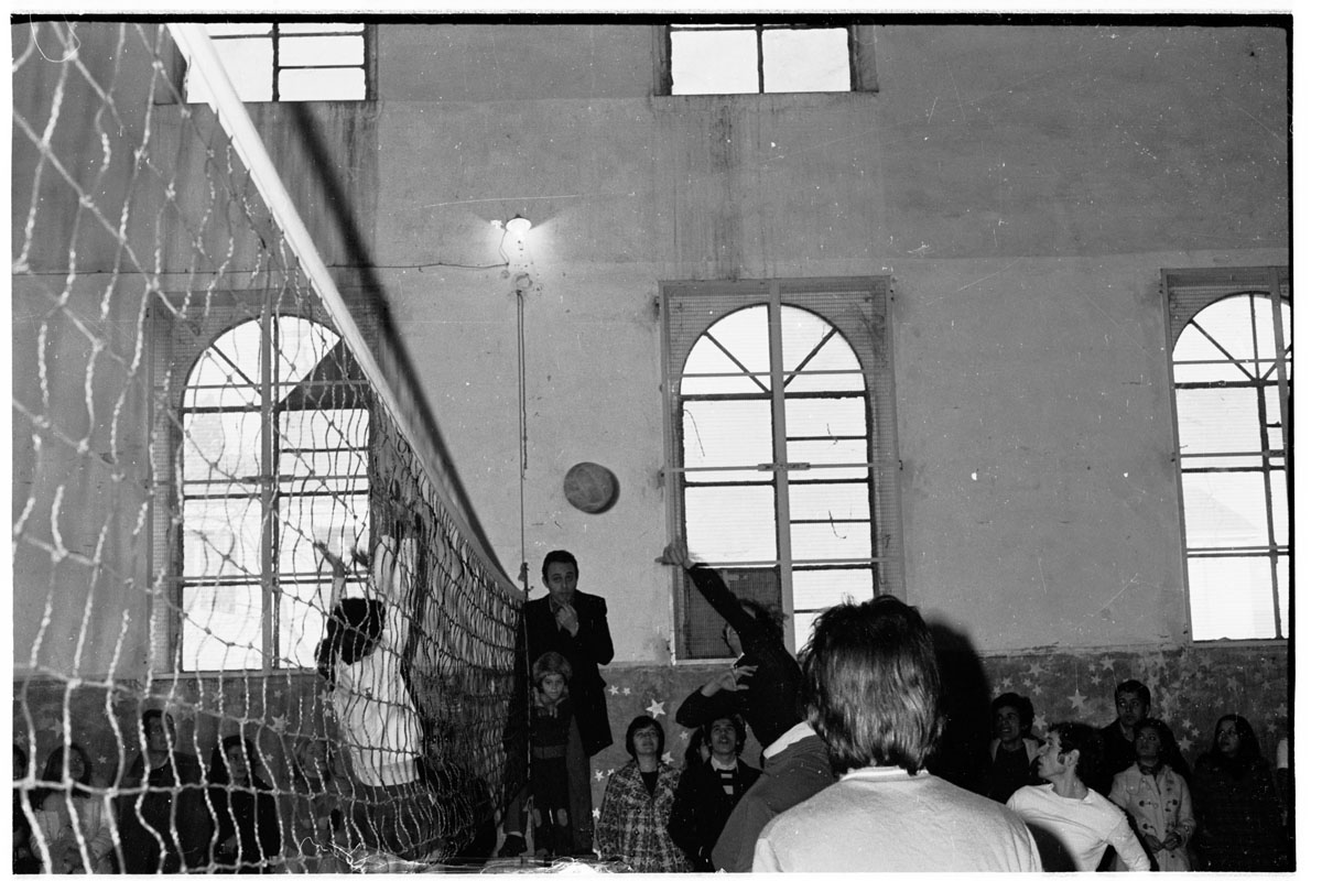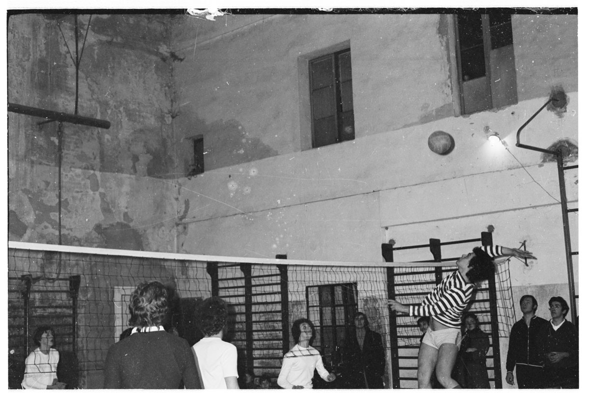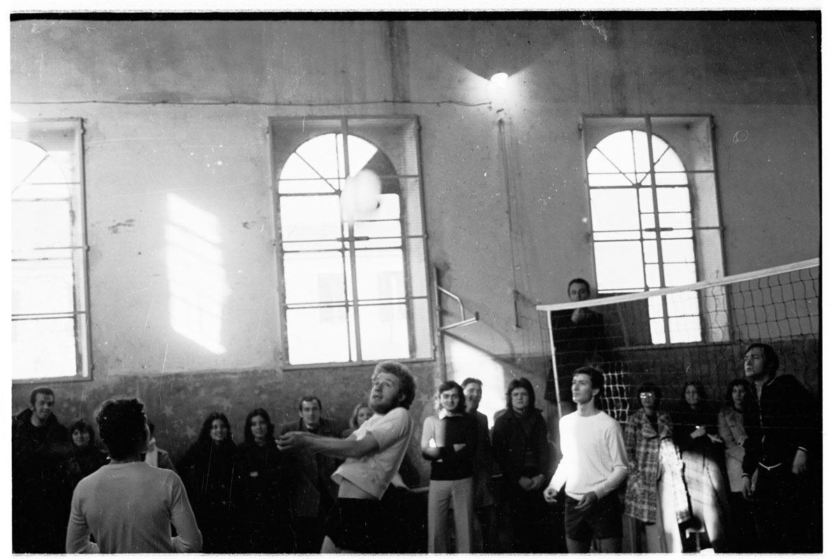 Da notare le condizioni dell’impianto sportivo; ovviamente non c’era il riscaldamento e quindi, in inverno, chi non giocava rimaneva con il cappotto