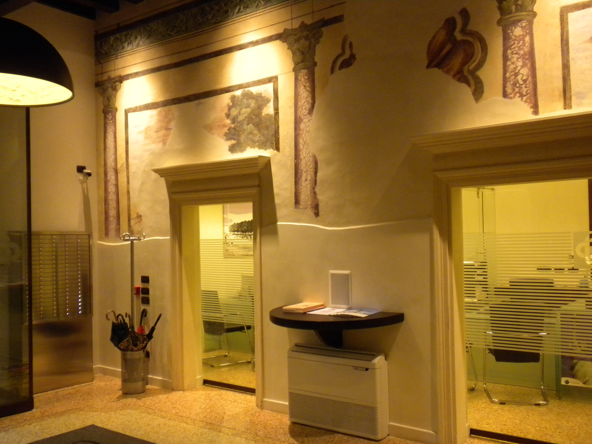 Durante i lavori, terminati a metà del 2010, sono state recuperate molte decorazioni pittoriche che prima erano coperte dalla malta, è stato alzato il pavimento dell’ingresso e quindi le porte che ricordavamo imponenti sono diventate più basse ed è stato murato l’accesso al terzo piano.
